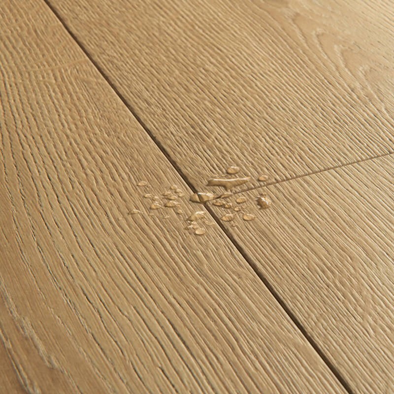 Le sol stratifié Capture Quick Step est doté du traitement HydroSeal, une innovation qui empêche l'humidité de s'infiltrer entre les lames. Vous pouvez ainsi l'installer en toute confiance dans la cuisine, la salle de bain ou l'entrée. Étanche jusqu'à 72 heures d'eau stagnante, il allie élégance et praticité au quotidien.
