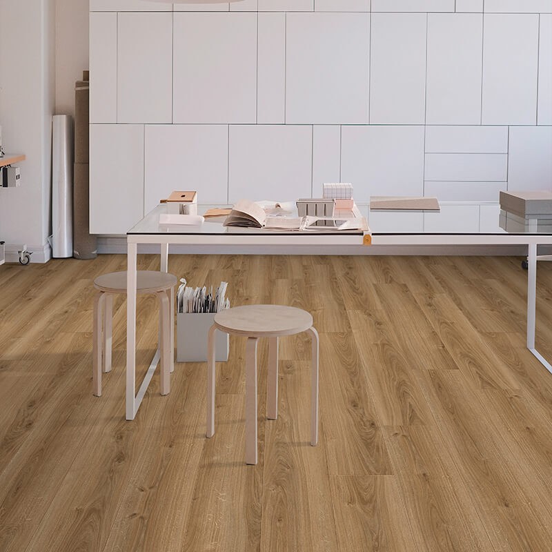 Le sol stratifié Locfloor Plus de Quick Step est décliné en six teintes. Il trouve sa place dans toutes les pièces non humides de l'habitat résidentiel, ainsi qu'en environnement commercial normal (petit commerce ou salle d'exposition).