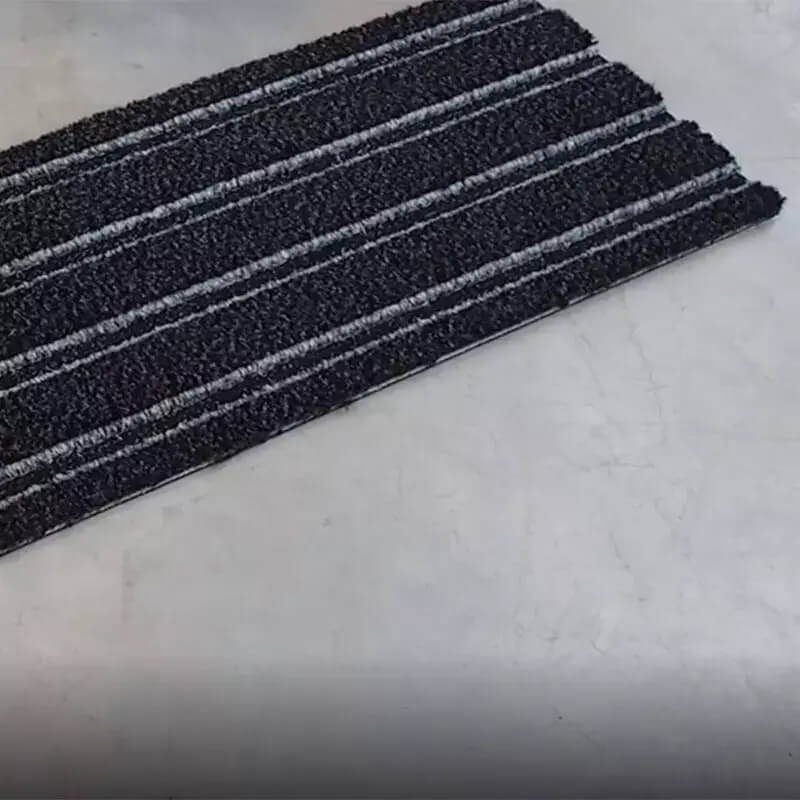 Il est composé de bandes de moquette polyamide très absorbantes, bordées par de fines bandes polypropylène qui facilitent le grattage du dessous des semelles.