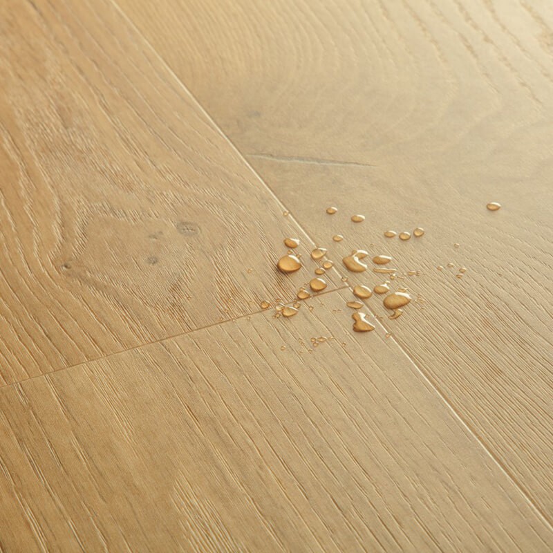 La couche supérieure étanche dotée de la technologie Scratch & Stain Guard protège efficacement contre les rayures, les taches et les marques d'usage. Le sol conserve longtemps son apparence soignée, même dans un environnement familial animé.