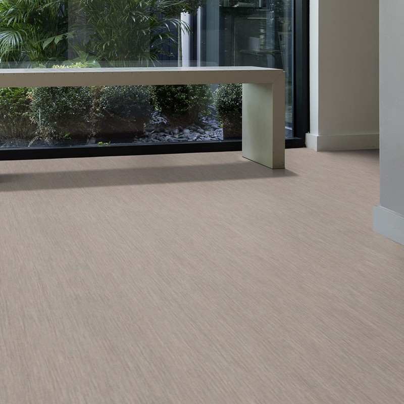 Le revêtement de sol sélectionné est un PVC acoustique multicouche, avec une double armature, groupe T d'abrasion, en rouleau de 2 m de large, de type TARALAY IMPRESSION HOP ACOUSTIC 33.
