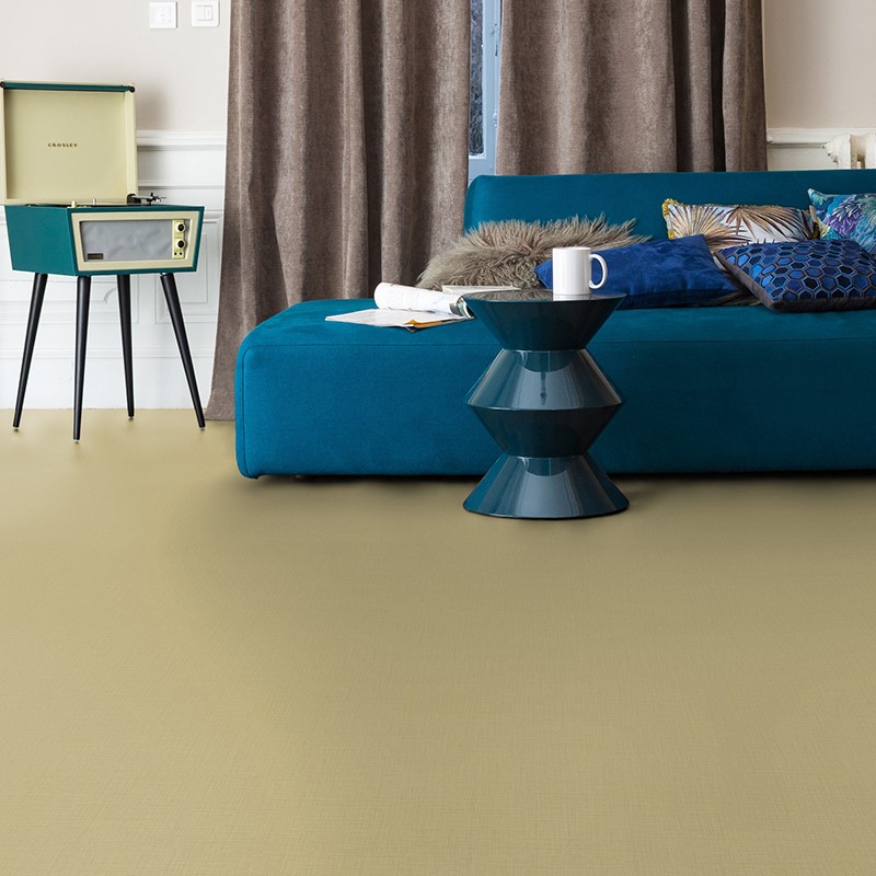 Le revêtement de sol sélectionné est un PVC acoustique multicouche, avec une double armature, groupe T d'abrasion, en rouleau de 2 m de large, de type TARALAY IMPRESSION HOP ACOUSTIC 33.