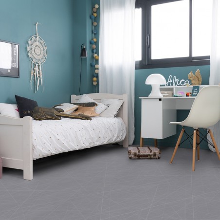 Le revêtement de sol sélectionné est un PVC compact multicouche, avec une double armature, groupe T d'abrasion, en rouleau de 2 m de large, de type TARALAY IMPRESSION HOP COMPACT 33.