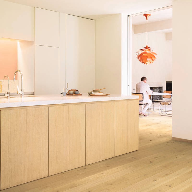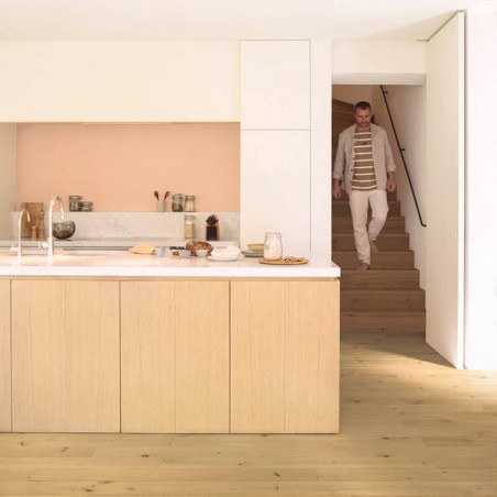 Nos collections Cala, Cascada et Amato vont encore plus loin. En plus de notre garantie de qualité Wood for Life, elles ont également une surface résistante à l'eau ! Cela signifie que l'eau ne s'infiltrera pas à travers les joints, vous n'avez donc pas à vous inquiéter des dommages causés par l'eau. Notre parquet résistant à l'eau peut être posé dans n'importe quelle pièce, y compris votrecuisine, votre entrée et votre salle de bains.