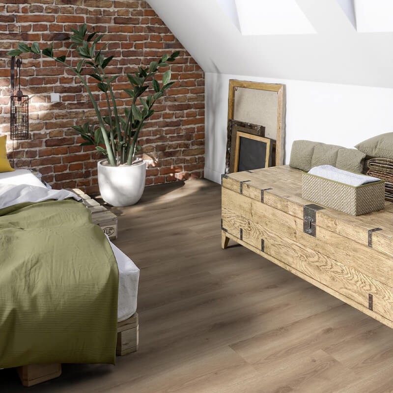 Convient aux salles de bains et aux cuisines : Élégance Rigid 55 résiste à l'eau grâce à la combinaison de la technologie SPC et du système de fixation étanche GenClick®. Avec une résistance à la glissance élevée (R10), elle convient parfaitement aux pièces d'eau et aux cuisines.