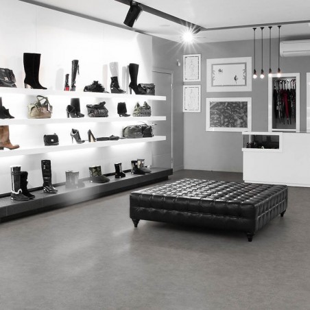 Revêtement de sol PVC hétérogène compact en dalles emboitables.