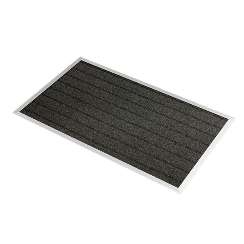Tapis amovible, simple à nettoyer en le secouant, à l'aspirateur ou au nettoyeur haute pression (max 100°C). Zone de récupération intégrée pour retenir les saletés détachées.
