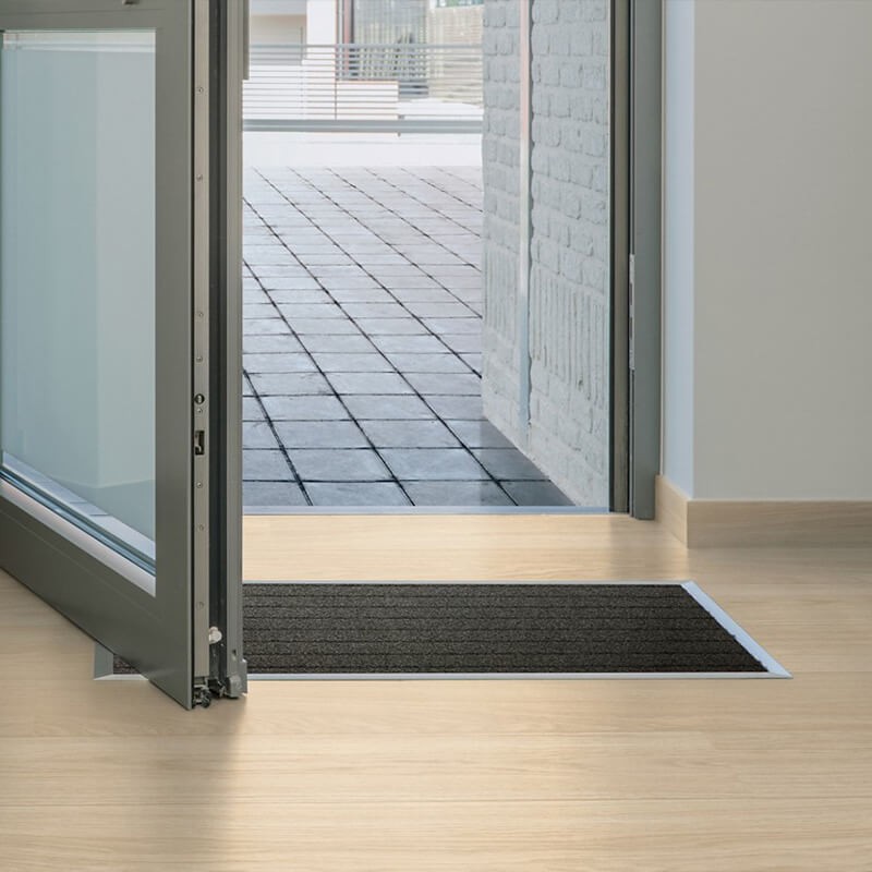 Trois zones de nettoyage distinctes : raclage des saletés grossières, brossage des particules fines et séchage des chaussures. Protège durablement vos sols Quick-Step contre les agressions quotidiennes. Compatible avec chauffage au sol et n'entrave pas l'ouverture des portes.