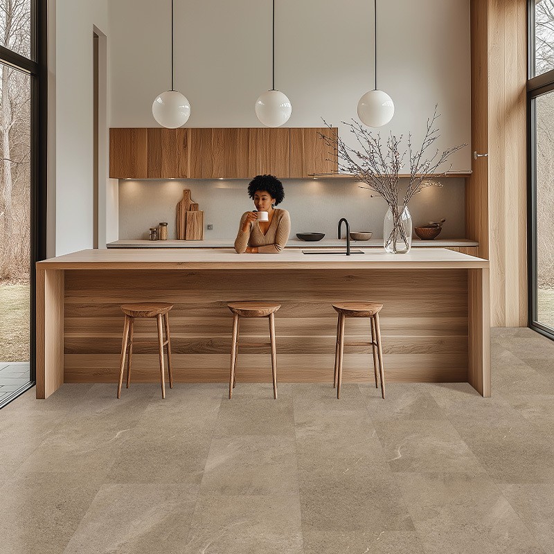 Ce revêtement se pose directement sur supports existants (carrelage, béton lisse...), à condition qu'ils soient plats, secs et propres. Aucun ragréage n'est nécessaire dans la majorité des cas. Prévoir un jeu de dilatationen périphérie.