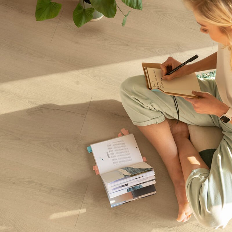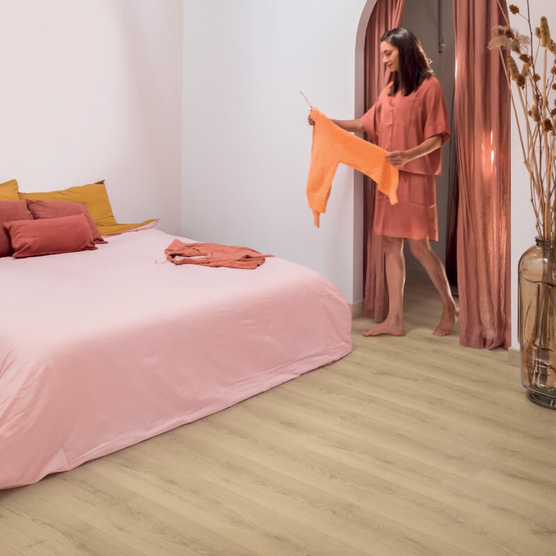 Le Sol Stratifié Classic Plus Quick Step incarne l'alliance parfaite entre beauté naturelle et performance technique. Sa finition soignée et ses nuances équilibrées de chêne créent une atmosphère chaleureuse et moderne. Conçu pour durer, il résiste à l'eau, aux rayures et à l'usure du quotidien, tout en restant simple à entretenir.